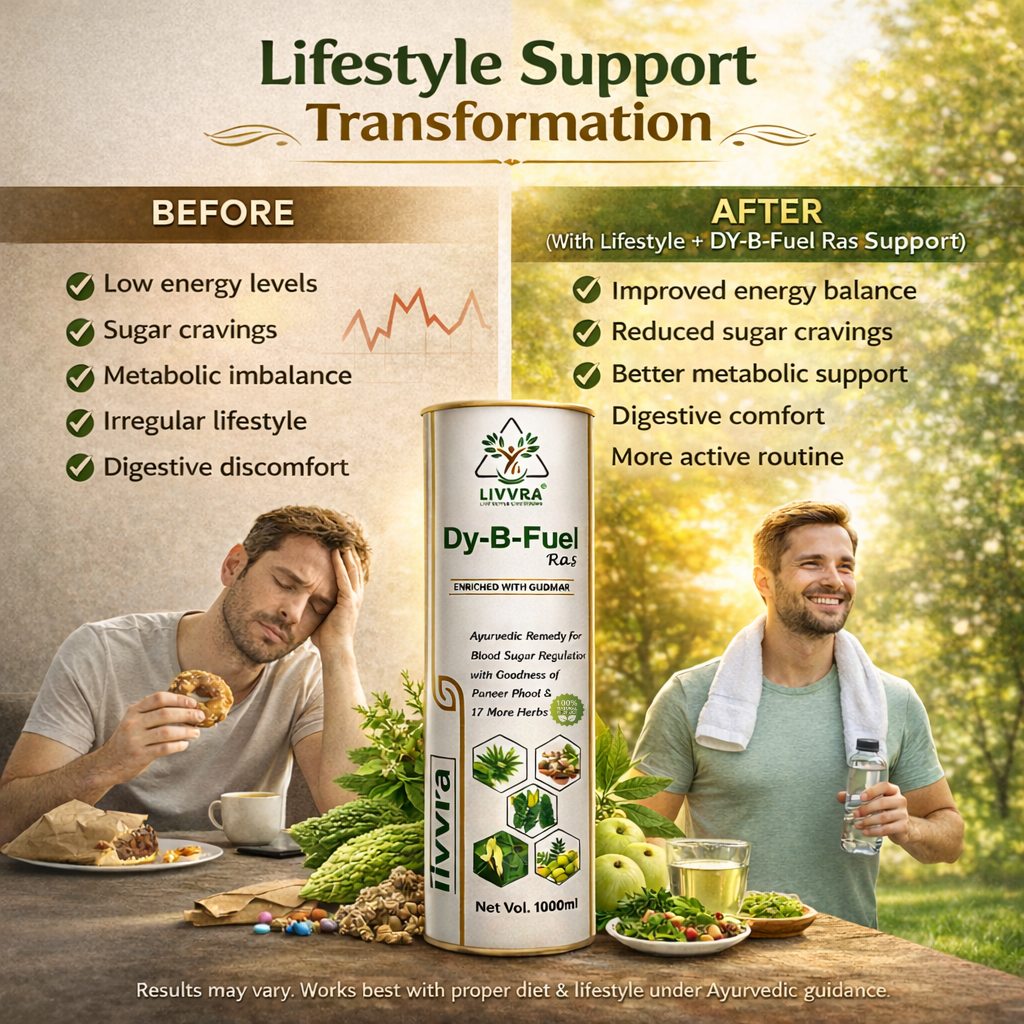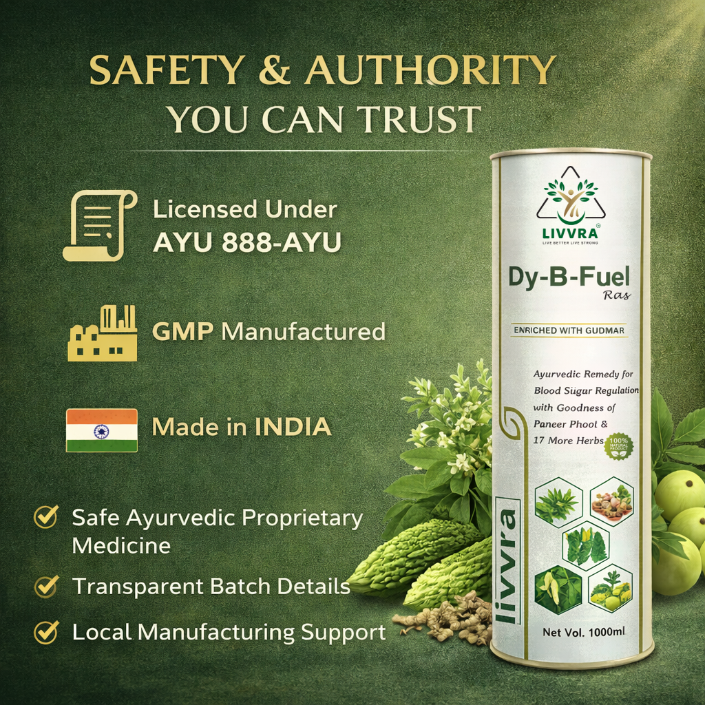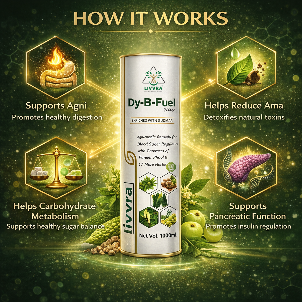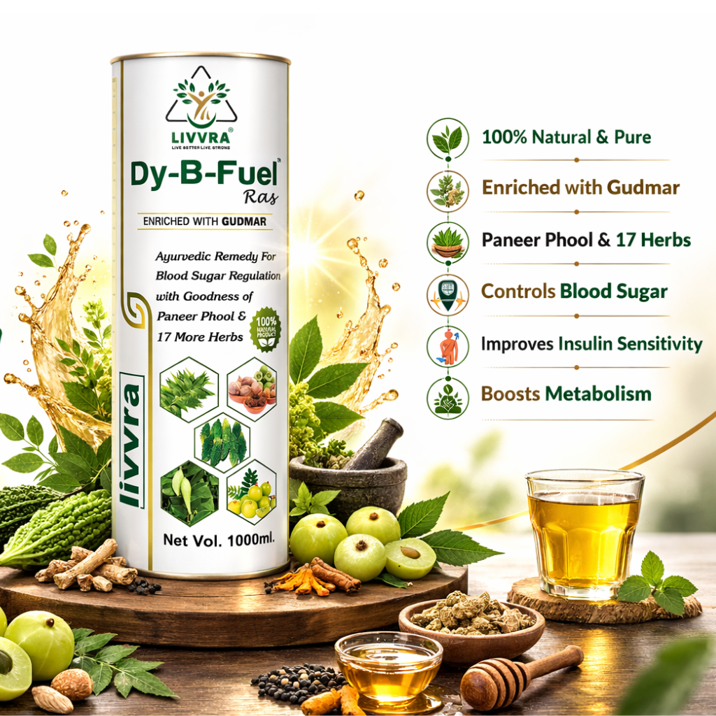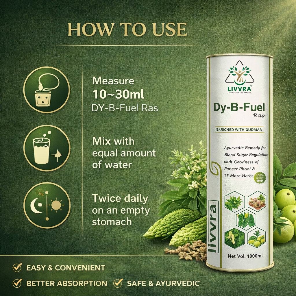 ๐ฟ A scientifically formulated Ayurvedic proprietary liquid designed to support healthy blood sugar regulation and metabolic balance. LIVVRA DY-B-Fuel-Ras combines Gudmar, Paneer Phool, and 17 additional herbs in a traditional liquid ras format for enhanced absorption and digestive support. โ 19 Herbal Ingredients โ Liquid Ras for Better Absorption โ GMP Manufactured โ 100% Natural Herbal Blend